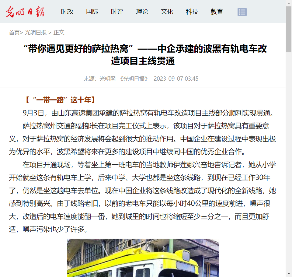[光明日報]“帶你遇見更好的薩拉熱窩”——中企承建的波黑有軌電車改造項目主線貫通
