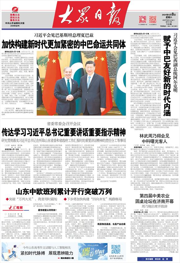 [大眾日?qǐng)?bào)頭版]山東中歐班列累計(jì)開行突破萬列